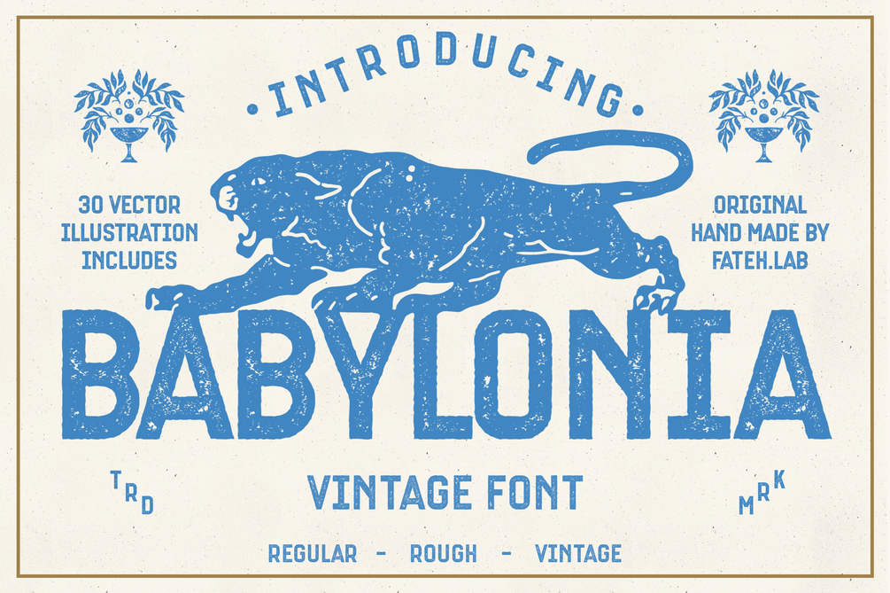 Babylonia is a bold and strong font, with a classic style making Babylonia is a font that meets your needs to create extraordinary designs, is perfect for clothing designs with bold and confident appearance, branding, posters ,. and also suitable for editorial / web titles. by adding some very detailed illustrations, of course it is very helpful to add elements to the design that you will create.